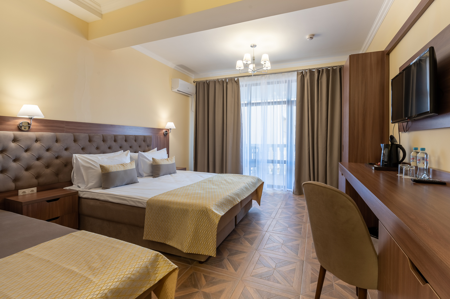 Номерной фонд пансионата – это комфортабельные и уютные номера четырех категорий, включающих в себя как бюджетные, так и роскошные варианты.
